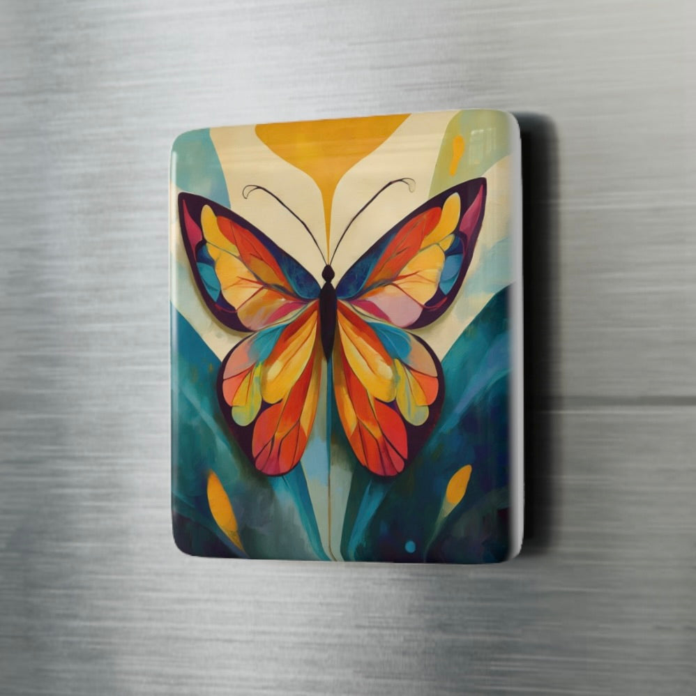 Mid Century Modern Butterfly 2"x2" Ceramic Tile Magnet for refrigerators, lockers, or any magnetic surface.