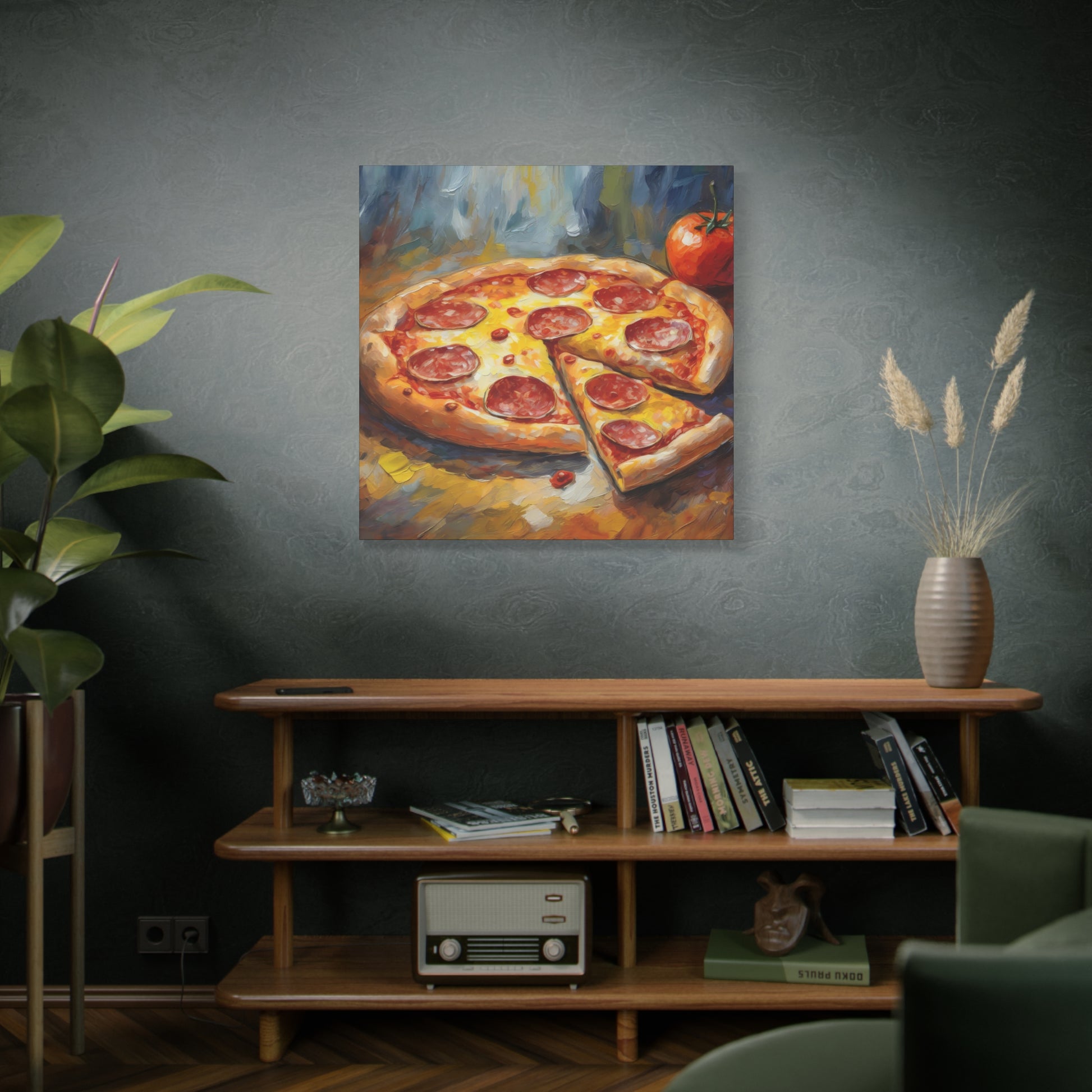 Premium canvas paint style print of a Pepperoni Pizza.