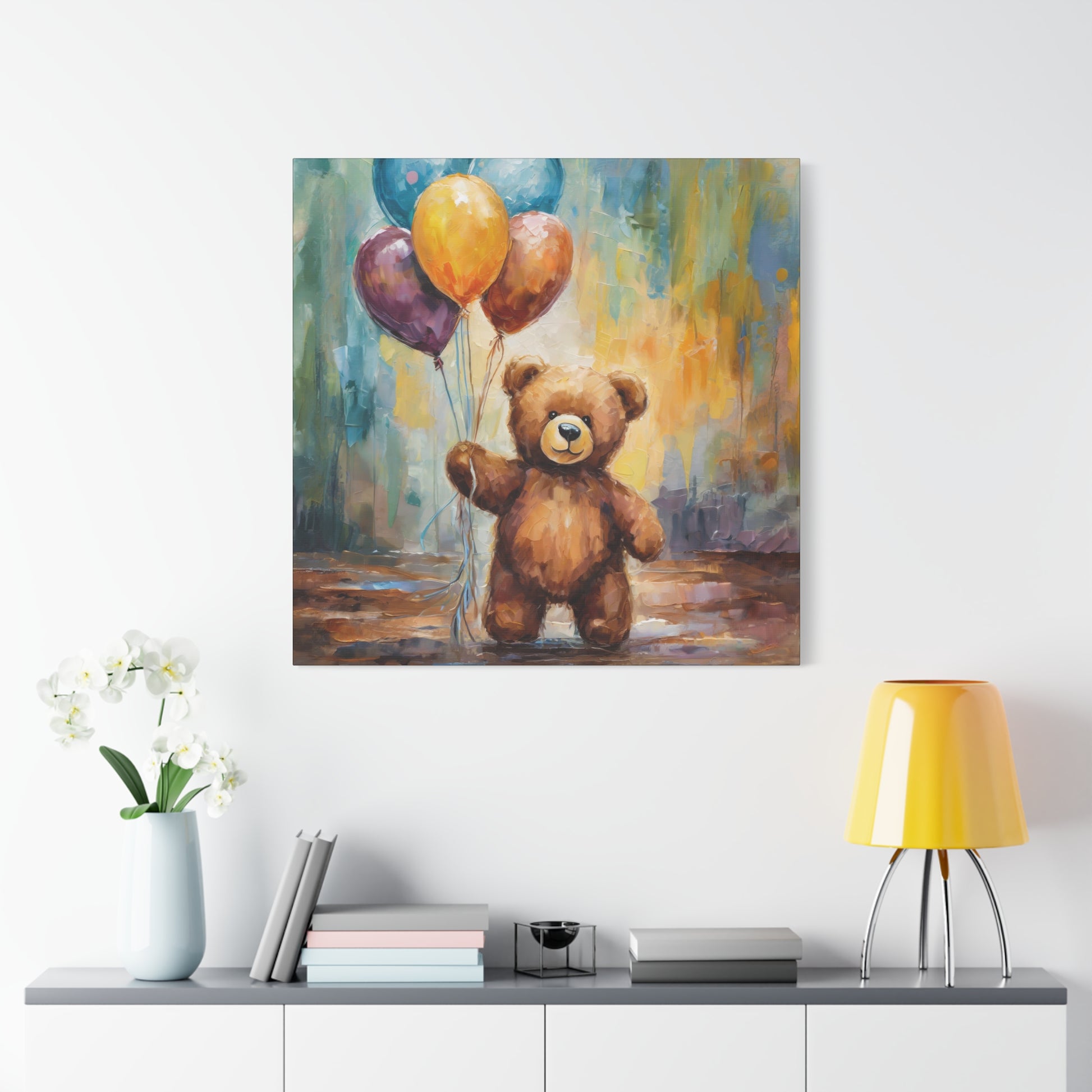 Teddy Bear Balloons Frameless Canvas Wall Art Sizes 10”x10” – 36”x36”
